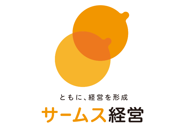 サームス経営の頭文字「S」と2つの円で構成しています。2つの円は「人」が上を見上げた横顔がモチーフ。サームス経営とその支援先企業様が共に明るい未来(経営力向上や地域活性化)へ一緒に伴走していく様子を表現しています。